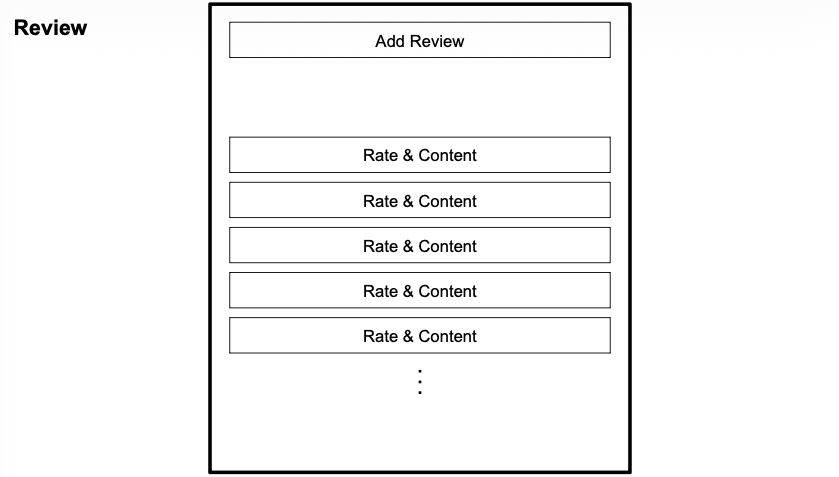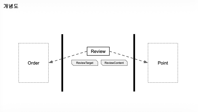 ReviewTarget: 현재는 상품 뿐이지만, 상품 옵션, 판매자 등등 확장성을 고려한 부수 개념ReviewContent: 별점, 내용에 대한 부수 개념