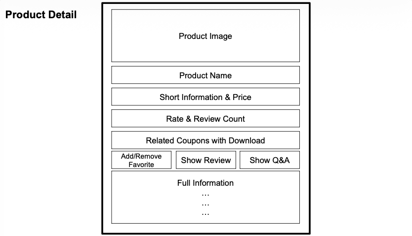 상품, 리뷰, 쿠폰 등 모든 걸 한번에 내려주는 전체 API를 만들수도 있고, 상품, 리뷰, 쿠폰 별로 각각 API를 만들어 내려줄 수도 있습니다.