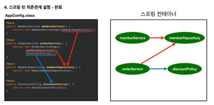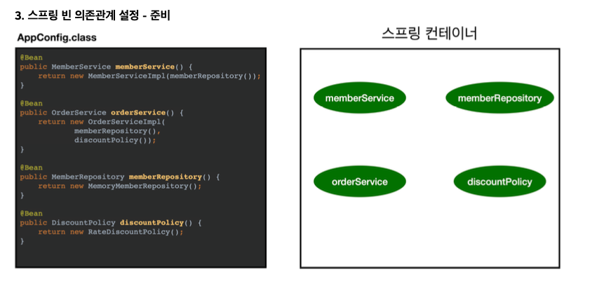 - 스프링 컨테이너는 설정 정보를 참고해서 의존관계를 주입한다.
