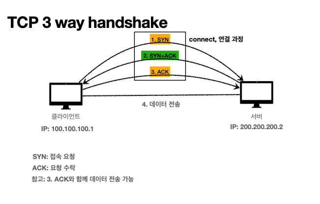 - 연결지향 - TCP 3 way handshake(가상 연결)