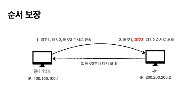 - 패킷이 순서대로 도착하지 않을 수 있음