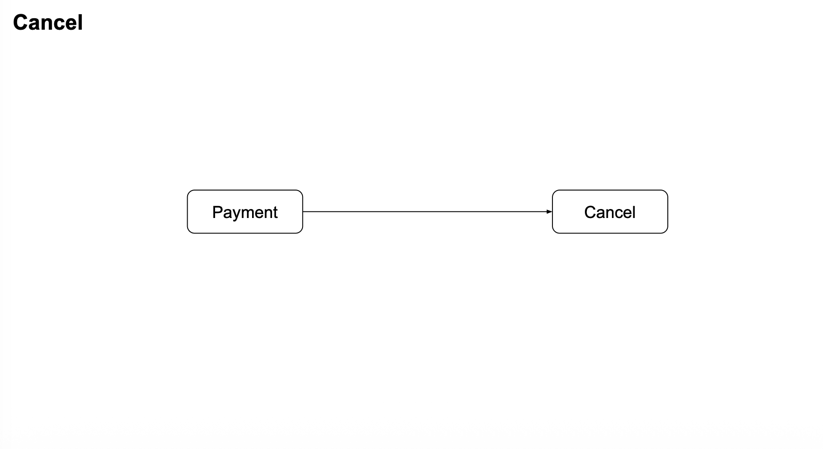 - 취소는 결제 데이터 기반으로 취소하므로 결제에 의존