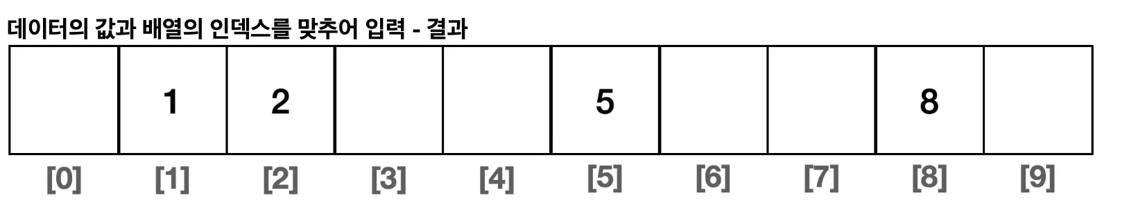 데이터 값 자체를 배열의 인덱스와 맞추어 저장
