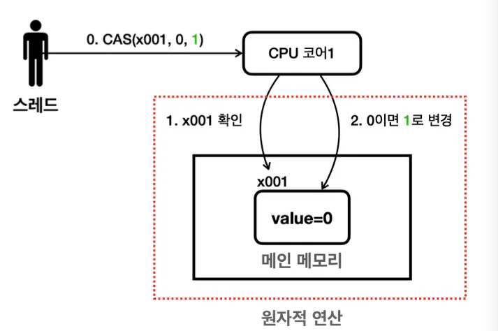 CAS 연산은 이렇게 원자적이지 않은 두 개의 연산을 CPU 하드웨어 차원에서 특별하게 원자적 연산으로 묶어서 제공하는 기능입니다.