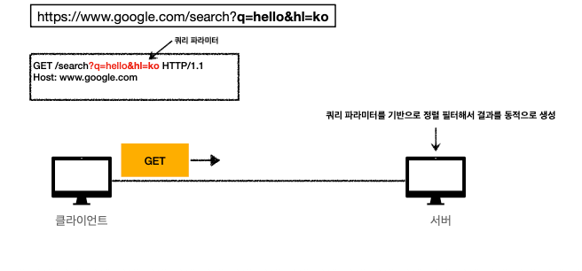 - GET은 쿼리 파라미터 사용해서 데이터를 전달