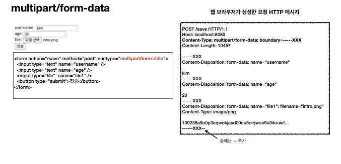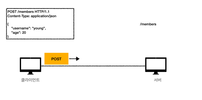 - POST, PUT, PATCH: 메시지 바디를 통해 데이터 전송