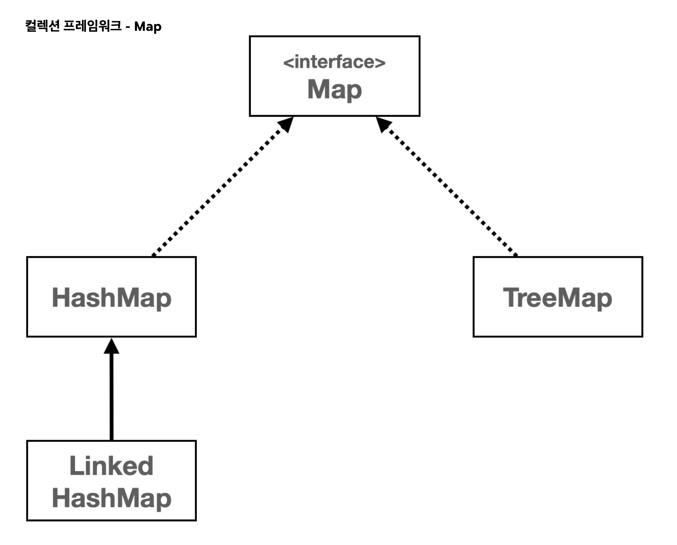 Map은 컬렉션 프레임워크지만Collection인터페이스를 상속 받지 않습니다.